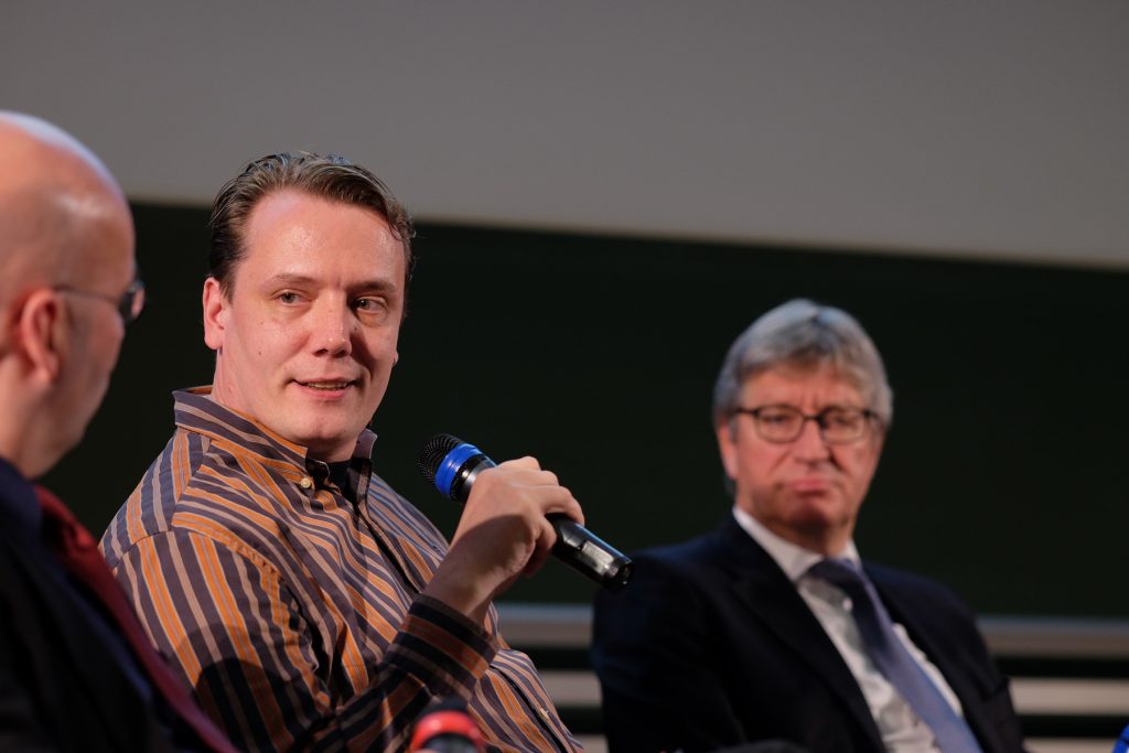 Alexander sprach in dieser Diskussionsrunde vor allen Dingen die fehlende Transparenz bei der Drittmittelvergabe an und kritisierte die fehlende (Hochschul-)Öffentlichkeit bei kontroversen Forschungsprojekten.